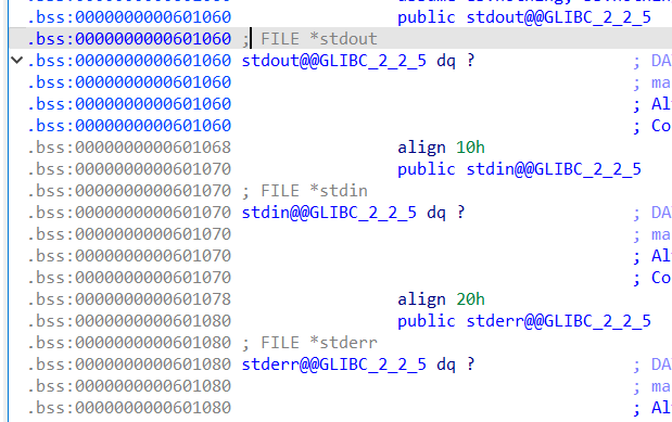 mprotect((void *)((unsigned __int64)&stdout & 0xFFFFFFFFFFFFF000LL), 0x1000u, 7);// 0000000000601060